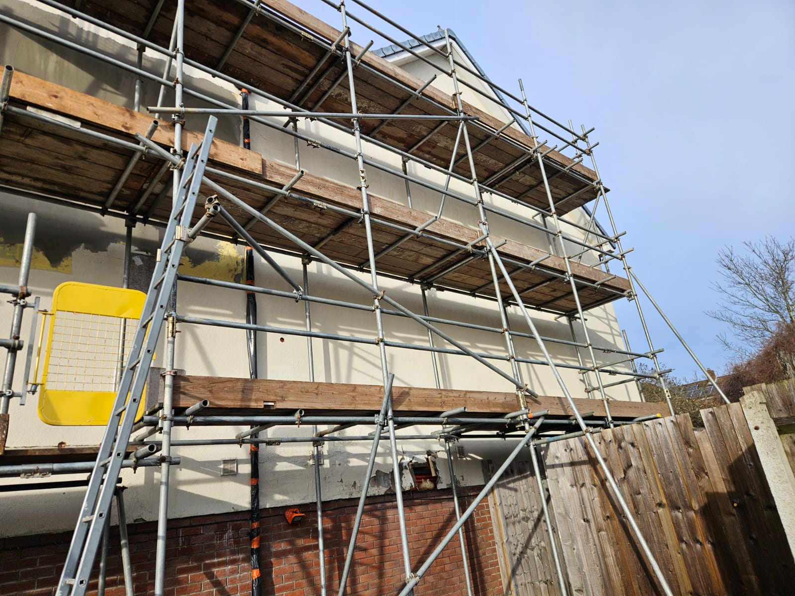 A thin coat render system has been applied to this gable and garage wall. The front has also been finished today, so I will have complete photos of that when the scaffold comes down. .